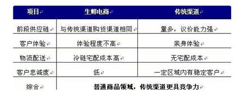 图表4:普通商品领域生鲜电商与传统渠道优劣势对比